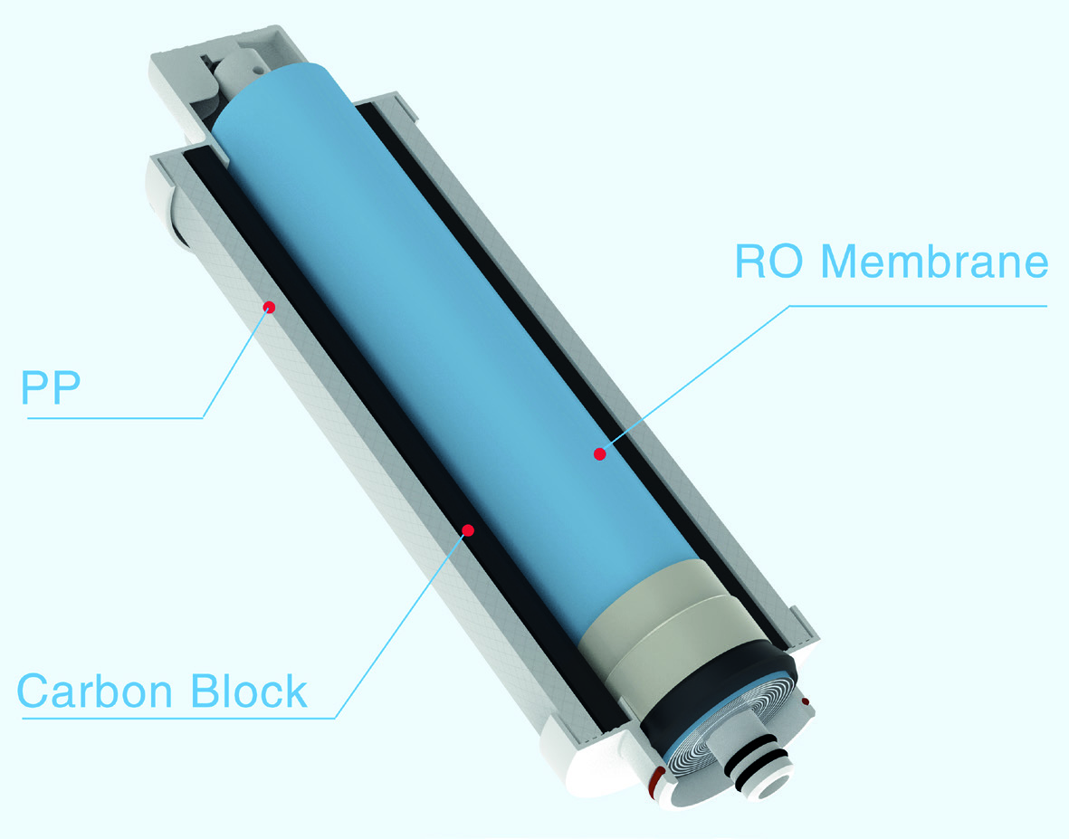 membrane 100 GPd élimine le calcaire, bactéries et tous les éléments indésirables pour produire une eau de bonne qualité.